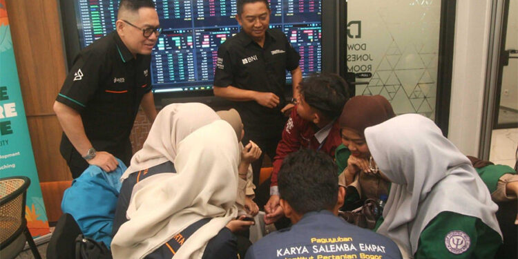 Jakarta, Kabarkansaja.id - Direktur PT BNI Sekuritas Teddy Wishadi (kanan) bersama Direktur PT BNI Sekuritas Yoga Mulya (kiri) berbincang dengan