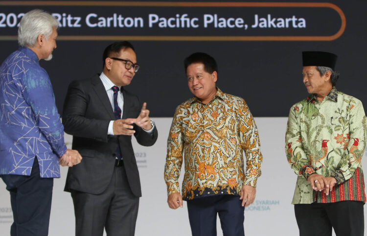 Jakarta, Kabarkansaja.id – Dari kiri ke kanan, Komisaris Utama PT Bank Syariah Indonesia Tbk (BSI) Adiwarman Azwar Karim, Wakil Menteri BUMN Kartika Wirjoatmodjo, Direktur Utama BSI Hery Gunardi dan Ketua Dewan Pengawas Syariah BSI Hasanudin saat ceremony BSI Global Islamic Finance Summit 2023, di Jakarta, Rabu (15/2/2023). Acara internasional summit keuangan syariah ini merupakan kali pertama dan terbesar yang digelar oleh bank syariah di Indonesia. Harapannya, acara ini memberikan insight dan kontribusi nyata untuk kemajuan keuangan syariah dalam pengembangan sektor riil di Indonesia. (K1)
