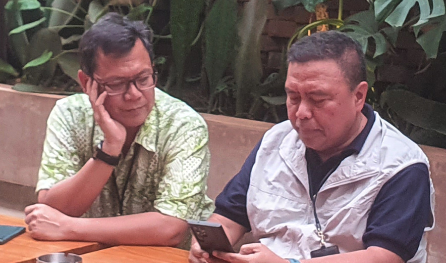 AVP External Communication PT Telkom Indonesia (Persero) Tbk (Telkom) Sabri Rasyid (kanan) dan GM Witel Jakarta Selatan Hari Purwanto (kiri).