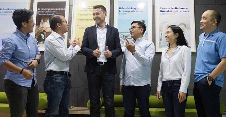 Jakarta, Kabarkansaja.id – Chief Retail Officer Niken Saraswati, Direktur Edwin Sugianto, Presiden Direktur Laurent Bourson, Direktur Kepatuhan Deddi Hamonangan, Chief of Strategy Partnership, & Emerging Customer Lina Vongsa-Ath dan Chief Technical Officer Peili Zhang berbincang saat memperkenalkan kantor baru AXA Insurance yang mendukung konsep Smart Working di Jakarta, Selasa (14/5/2024).