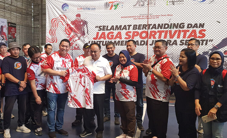 Jakarta, Kabarkansaja.id – Menteri Komunikasi dan Informatika (Menkoinfo) Budi Arie Setiadi disaksikan menerima jersey saat membuka turnamen futsal Menkominfo Cup yang menjadi rangkaian Hari Bhakti Pos dan Telekomunikasi (Harbak Postel) ke-79 di Jakarta, Sabtu (31/8/2024).