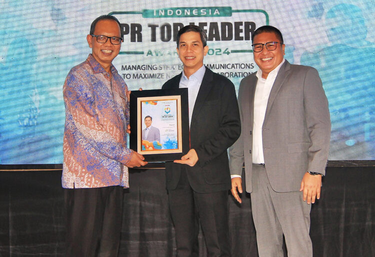 Jakarta, Kabarkansaja.id – Sekretaris Perusahaan(Sekper) PT Bank Muamalat Indonesia Tbk Hayunaji (tengah) didampingi Head of Public and Media Relations Bank Muamalat Deddy Hasibuan (kanan) menerima penghargaan Top Public Relations Leader 2024 for Strengthening Innovation and Adaptability to Realize Business Strategy kategori Bank Syariah dari CEO/Pemred Warta Ekonomi Muhamad Ihsan (kiri) di Jakarta, Kamis (29/8/2024).