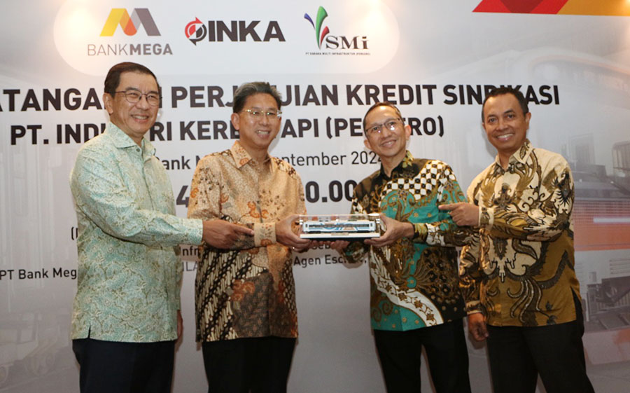 Bank Mega bersama PT Sarana Multi Infrastruktur (Persero)/SMI sebagai Joint Mandated Lead Arranger (JMLA) memberikan fasilitas kredit sindikasi kepada PT Industri Kereta Api (Persero)/INKA. Penandatanganan dilakukan Ferry Oktavianus Mantiri, Credit Business Head Bank Mega dan Anton Prabowo Argo, Corporate Syndication Head Bank Mega dengan Benedictus Pudji Hartono, Kepala Divisi Pembiayaan Berkelanjutan PT SMI.