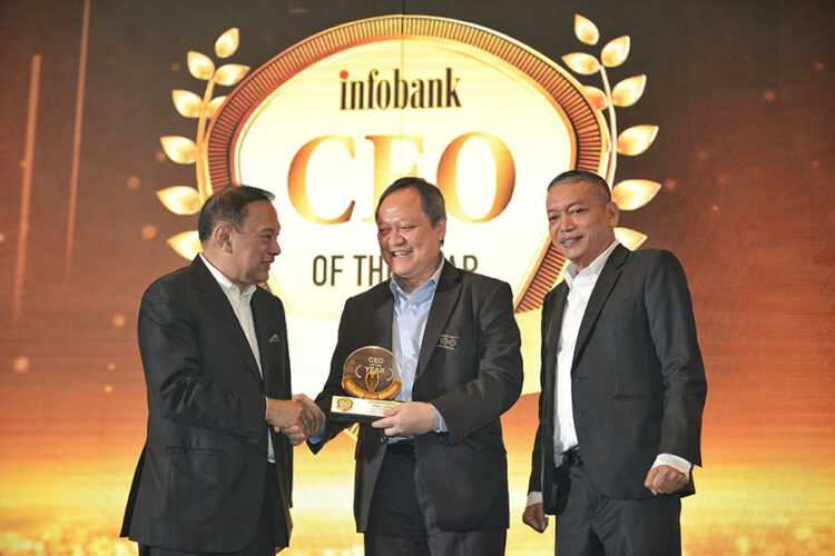 Jakarta, Kabarkansaja.id – Direktur Utama Artajasa Armand Hermawan (tengah) menerima penghargaan CEO of The Year 2024 dari Majalah Infobank yang diserahkan oleh Dewan Pakar Infobank Agus Martowardojo (kiri) didampingi Pemimpin Redaksi Infobank Eko B Supriyanto (kanan) dalam acara Top 100 CEO & The 200 Future Leaders di Jakarta, Jumat (29/11/2024).