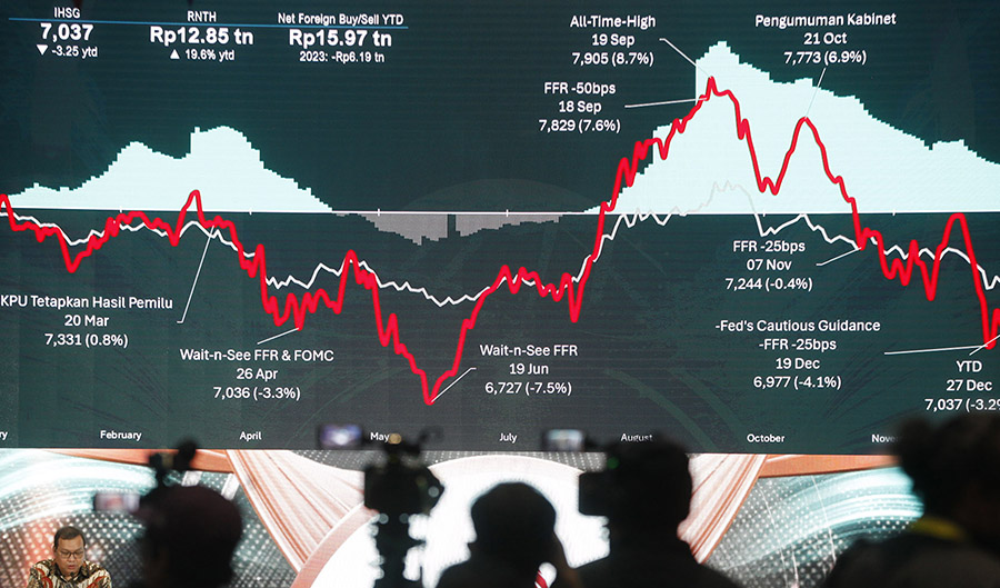 IHSG ditutup pada akhir tahun 2024 menguat 43,33 poin atau 0,62 persen ke posisi 7.079,90 sementara saham unggulan kelompok 45 atau indeks LQ45 naik 1,52 poin yaitu 0,18 persen ke posisi 826,62. (K1)