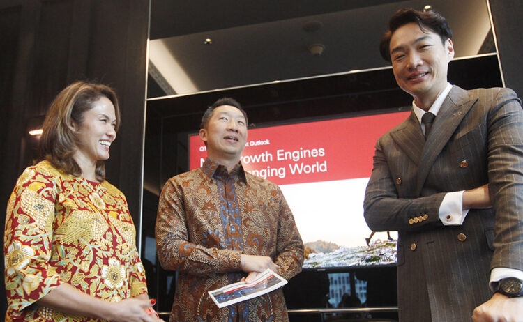 Jakarta, Kabarkansaja.id – Head Corporate Communication HSBC Indonesia Ariavita Purnamasari, Head of Markets and Securities Services HSBC Indonesia Ali Setiawan dan Chief Investment Officer, Southeast Asia and ASEAN for Private Banking and Wealth Management HSBC James Cheo, berbincang di sela memberikan keterangan HSBC Outlook, di Jakarta, Kamis (9/1/2025).