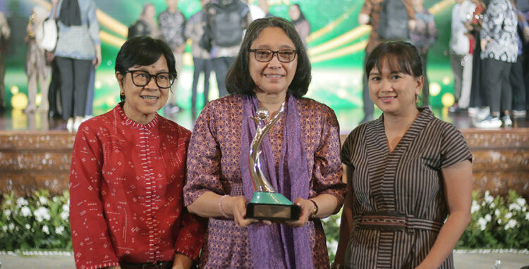 Jakarta, Kabarkansaja.id – Superintendent Government Relations & Compliances PT Agincourt Resources (PTAR) Vidra Rubyneisca (dari kiri), Direktur External Relations Sanny Tjan dan  Superintendent Communications & Outreach Strategy Teresia Prahesti berpose bersama usai menerima Anugerah Lingkungan PROPER di Jakarta, Senin (24/2/2025).