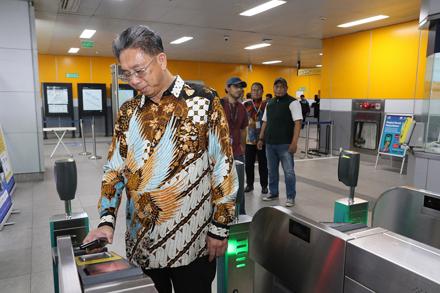 Jakarta, Kabarkansaja.id – Direktur Utama Bank Mega Kostaman Thayib melakukan tap QRIS NFC melalui aplikasi M-Smile di pintu masuk MRT Jakarta, Jumat (14/3/2025) di sela “Peluncuran QRIS Tanpa Pindai” oleh Bank Indonesia (BI).