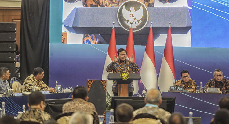 Jakarta, Kabarkansaja.id – Presiden Prabowo Subianto menyampaikan arahan saat membuka Sarasehan Ekonomi Bersama Presiden RI di Menara Mandiri, Senayan, Jakarta, Selasa (8/4/2025).