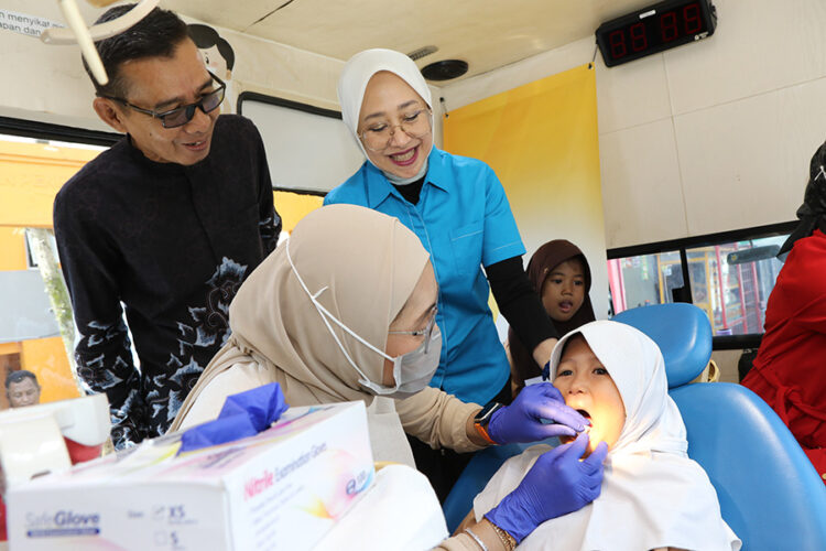 Pemeriksaan dilakukan di dalam Mobil Sehat lengkap dengan fasilitas klinik gigi mini serta peralatan yang memadai untuk melakukan tindakan pengobatan gigi jika diperlukan.