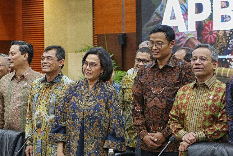 Jakarta, Kabarkansaja.id – Menteri Keuangan Sri Mulyani bersama Wakil Menteri Keuangan Thomas Djiwandono, Suahasil Nazara, Direktur Jenderal Bea Cukai Djaka Budi Utama, dan Direktur Jenderal Pajak Bimo Wijayanto sebelum memberikan pemaparan pada konferensi pers APBN KiTa di Kantor Kementerian Keuangan, Jakarta, Jumat (23/5/2025).