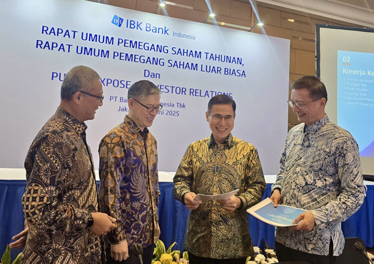 Jakarta, Kabarkansaja.id – Dari kiri ke kanan, Direktur PT Bank IBK Indonesia Tbk (AGRS) Edwin Rudianto, Direktur Kredit (baru) Park Jin Je, Direktur Utama Oh In Taek, dan Direktur Kepatuhan Alexander Frans Rori berbincang usai public expose dan investor relations (AGRS) di Jakarta, Jumat (20/6/2025). Bank IBK Indonesia berhasil catatkan laba bersih sebesar 17,76% secara year on year menjadi Rp 215,85 miliar di tahun 2024. (K1)