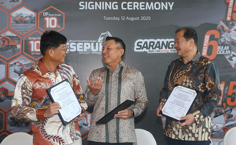 Jakarta, Kabarkansaja.id – Dari kiri ke kanan, CFO HD Hyundai XiteSolution, Korea Selatan Yeon Joo Bae, Komisaris Utama, PT Kobexindo Tractors Tbk Yudi Budiman, dan CEO KB Capital, Korea Selatan Jung Ill Bin berbincang di sela penandatanganan kerja sama memperkuat kemitraan strategis untuk meningkatkan penetrasi penjualan alat berat di Indonesia di Jakarta, Selasa (12/8/2025). Melalui program kerja sama pembiayaan bertajuk “Sesepuh” dan “Saranghae”, konsumen dapat memiliki alat berat Develon—produk buatan HD Hyundai XiteSolution dengan skema pembiayaan yang lebih mudah dan kompetitif dari KB Capital. Program ini menawarkan DP dan bunga mulai 10% dengan grace period cicilan 4 – 6 bulan untuk semua tipe alat berat Develon yang dipasarkan Kobexindo di Indonesia. HD Hyundai XiteSolution merupakan produsen alat berat terkemuka asal Korea Selatan dimana pada kuartal II 2025 membukukan penjualan sebesar KRW 1,18 triliun. (K1)