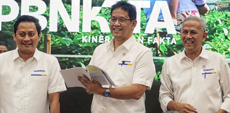 Jakarta, Kabarkansaja.id – Menteri Keuangan Purbaya Yudhi Sadewa bersama Wakil Menteri Keuangan Thomas Djiwandono  dan Wakil Menteri Keuangan Anggito Abimanyu  berbincang di sela konferensi pers APBN KiTa di Jakarta, Senin (22/9/2025).