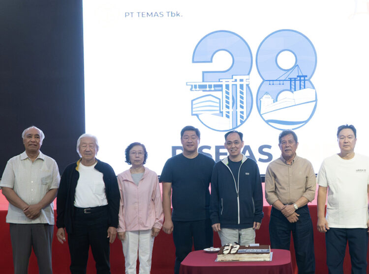 Bogor, Kabarkansaja.id – Dari kiri ke kanan, Komisaris Independen PT Temas Tbk Theo Lekatompessy, Komisaris Utama PT Temas Tbk Harto Khusumo dan isteri, Komisaris Temas Shipping Sutikno Khusumo, Dirut PT Temas Tbk Ricky Effendi, Komisaris Independen PT Temas Tbk Alfred Natsir, dan Komisaris PT Pelabuhan Temas Nusantara Hadijaya Khusumo foto bersama di sela syukuran HUT Temas ke-38 bertema “Rise as One” di Bogor, Jawa Barat. Saat ini, perseroan melayani 60 pelabuhan nusantara dalam rangka mendukung program Tol Laut. (K1)