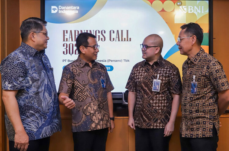 Jakarta, Kabarkansaja.id – Direktur Utama BNI Putrama Wahju Setyawan (dua dari kiri) berbincang bersama (dari kiri ke kanan), Direktur Treasury & International Banking Abu Santosa Sudradjat, Direktur Finance & Strategy BNI Hussein Paolo Kartadjoemena, dan Direktur Risk Management BNI David Pirzada di sela Paparan Kinerja Kuartal III 2025 di Jakarta, Jumat (24/10/2025). PT Bank Negara Indonesia (Persero) Tbk (BNI) menutup kuartal III 2025 dengan kinerja keuangan yang solid di tengah dinamika ekonomi global. Penguatan fundamental, efisiensi pendanaan, serta transformasi digital yang semakin matang menjadi pilar utama ketahanan dan pertumbuhan berkelanjutan perseroan.